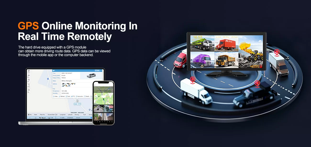 Support HD screen display、Video playback、Track playback、 intercom and monitoring、4-channel split-screen display、Video recording、Ultra-clear image quality、Long-term storage、Mobile phone and computer monitoring、Cyclic recording、Fleet management、Reverse image;