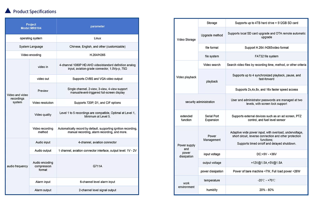 Support Recording Modes: Automatic on power-up, manual, scheduled, motion detection, alarm trigger;