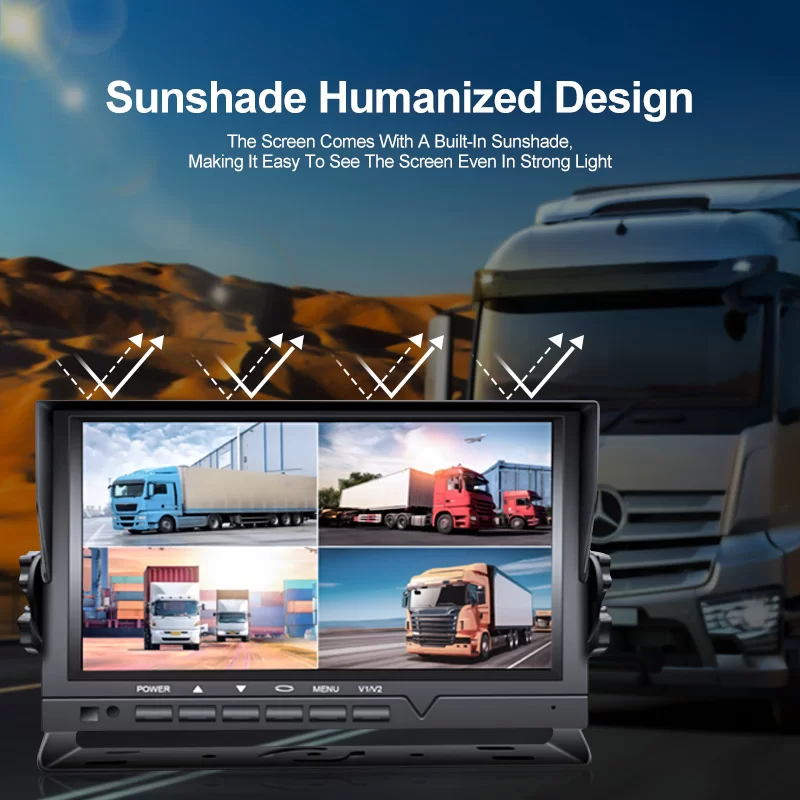 adjustable front and rearangle s, high resolution, easy to in stall, reverse trigger,integrated sunshade;